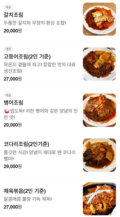 대표 메뉴인 갈치조림, 고등어조림, 병어조림, 코다리조림은 비린내 없이 깔끔하고, 양념이 속까지 배어 밥 한 공기가 금세 사라집니다 🐟