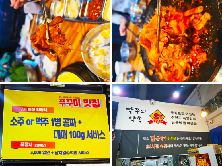 대표 메뉴인 쭈꾸미삼겹은 탱글한 쭈꾸미와 고소한 삼겹살의 조합이 완벽하고, 쭈꾸미만 메뉴는 쭈꾸미 본연의 식감을 제대로 즐기기 좋습니다 😋