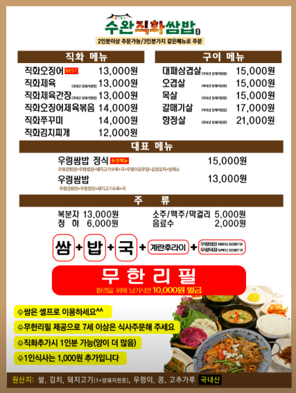 수완지구에서 직화쌈밥 제대로 즐기고 싶으시다면 한 번 방문해보시길 추천드립니다.👍