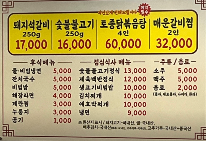 이곳의 대표 메뉴인 🥩 돼지석갈비와 🔥 숯불불고기는 숯불 향이 은은하게 배어 깊고 진한 풍미가 살아 있으며, 푸짐한 양으로 만족도가 높습니다.