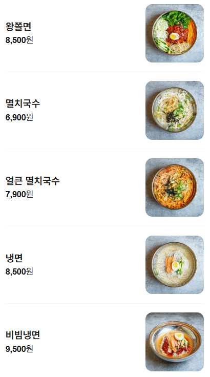 쫄깃한 왕쫄면, 깔끔한 국물의 멸치국수, 얼큰한 얼큰멸치국수까지 🍜