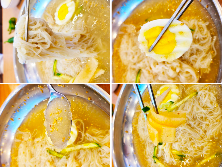 물냉면을 휘휘 저어서
