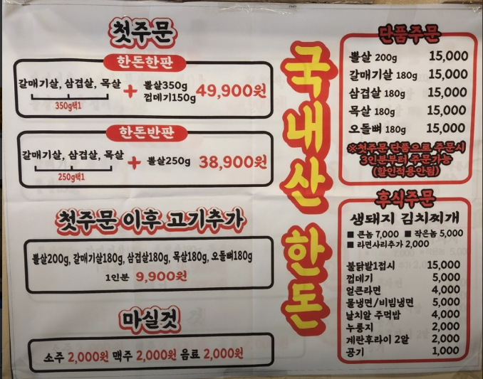 국내산 한돈만 사용해 믿고 먹을 수 있는 진짜 고깃집이에요. 대표 메뉴는 갈매기살, 삼겹살, 목살, 뽈살로, 부드럽고 육즙 가득한 맛이 일품이에요