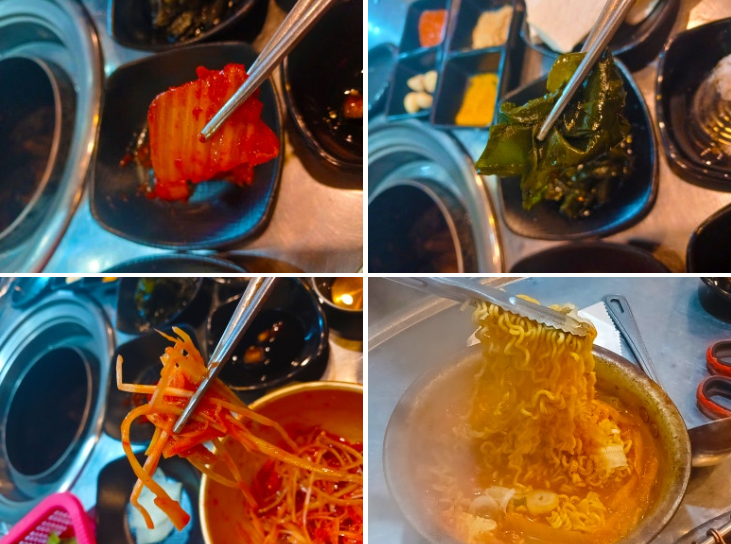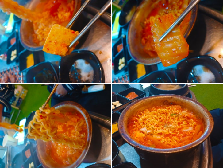 🍲 고기를 즐기고 난 뒤엔 후식까지 완벽하게 준비돼 있어요. 칼칼한 생돼지김치찌개, 매콤한 불닭발, 쫄깃한 껍데기, 시원한 냉면, 든든한 날치알주먹밥과 누룽지, 해장용 얼큰라면까지! 메뉴 구성이 정말 알차죠 👍