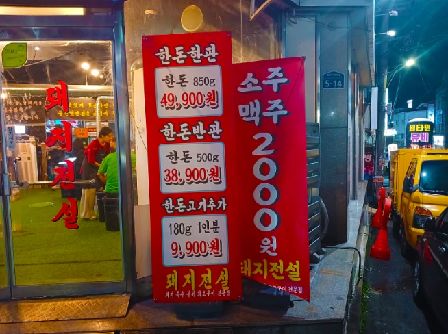 ☀️태양SNS그룹 "돼지전설 산수직영점" 솔직후기 산수동 먹자골목에 찐돼지맛집이 있다고 해서 들러본 곳!! "돼지전설 산수직영점" 입구에서부터 여러개 빨간 입간판이 심상치 않...