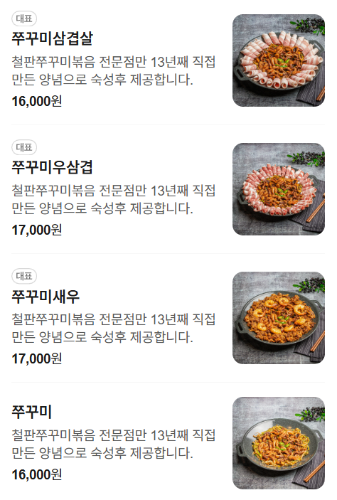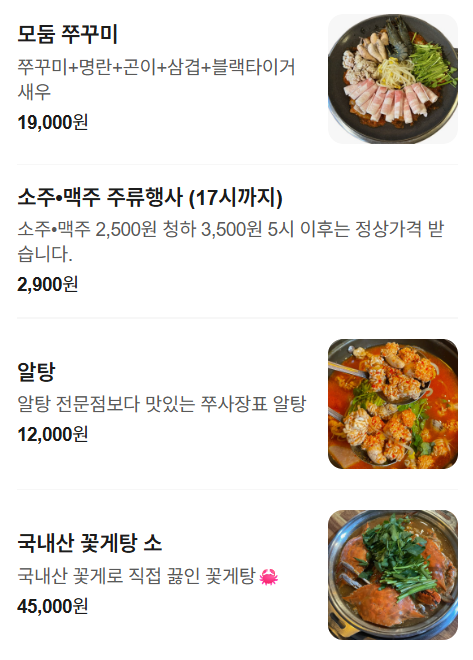 🍽 쭈꾸미삼겹살, 쭈꾸미우삼겹, 쭈꾸미새우, 모둠쭈꾸미 등 쭈꾸미와 다양한 재료가 어우러진 메뉴들이 입맛을 확 사로잡습니다. 쫄깃한 쭈꾸미에 고소한 삼겹살, 담백한 우삼겹이 만나 매콤하고 중독적인 맛을 완성했어요!