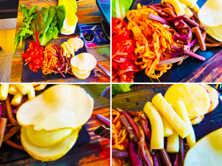 신선한 야채와 다채로운 반찬거리는