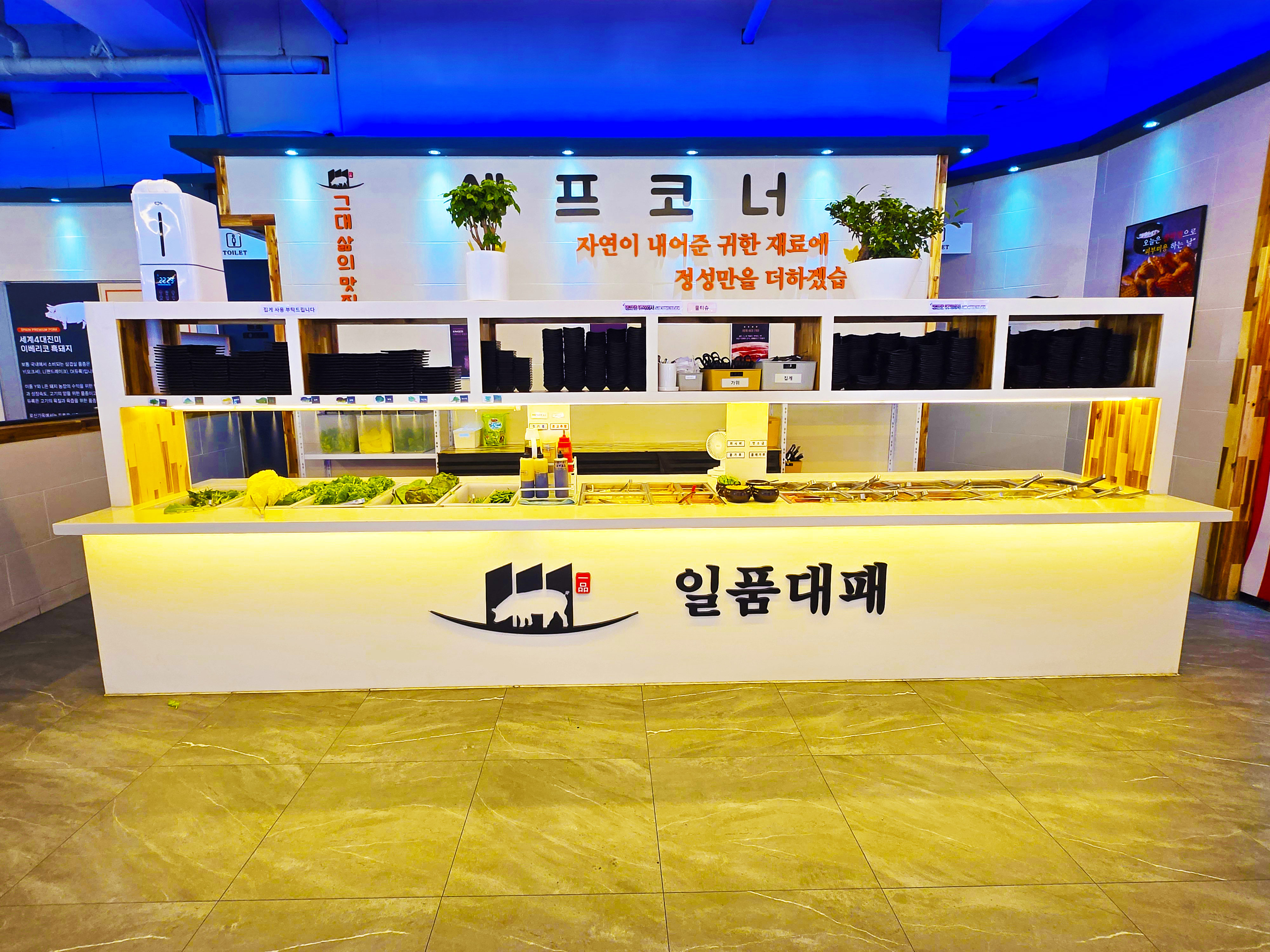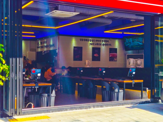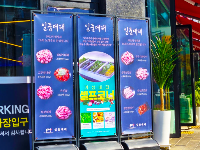 작은 키오스크 그리고 넓은 고기판이