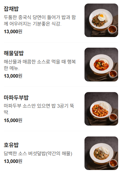 볶음밥, 짜장밥, 잡채밥