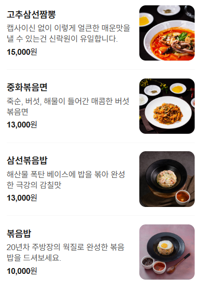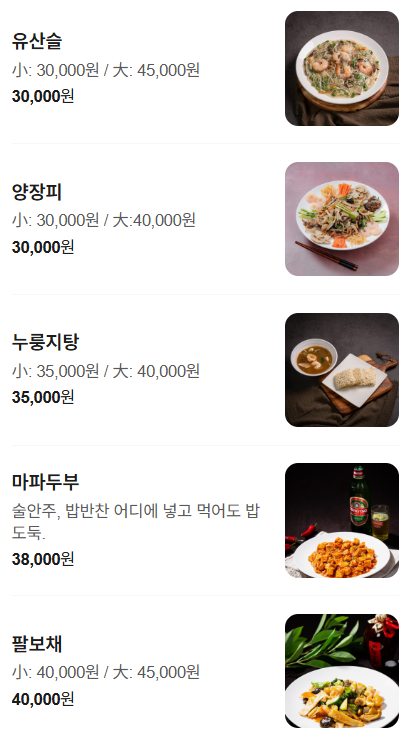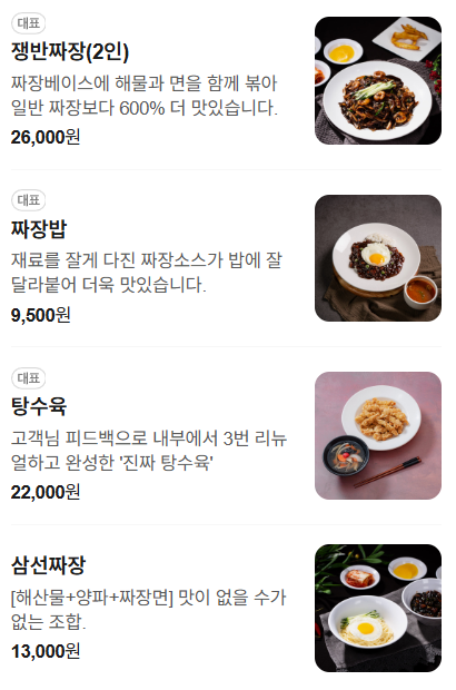 기본적인 중식 메뉴만 제공하는