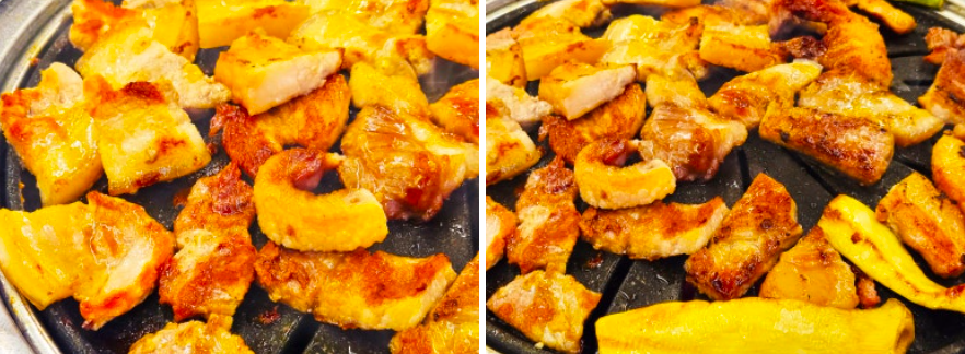 🔥바삭하게 구워지는 대패큰돼지한마리, 쫄깃한 막창큰돼지한마리, 고기 덕후를 위한 양념돼지세트 역시 준비되어 있습니다. 메뉴 이름처럼 ‘한마리’ 단위의 푸짐함으로 테이블을 꽉 채워요!